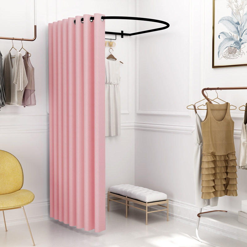 Custom U-shaped clothing store display shelf mobile fitting room curtain fitting ring dressing room changing room track bar