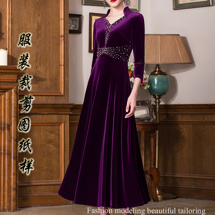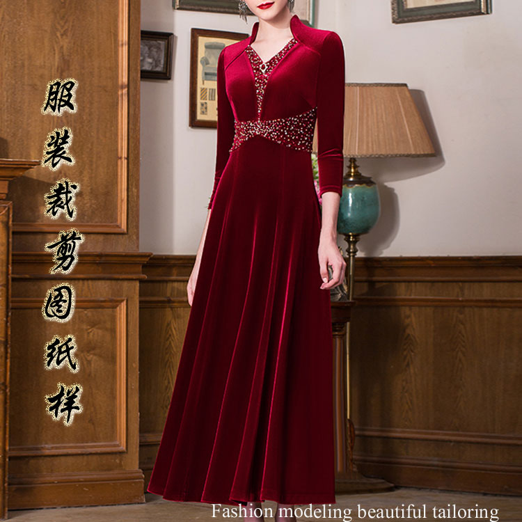 Long Fix Golden Velvet Dress Paper Spring Fall Winter New Dress Womens Skirt Skirt Cracking