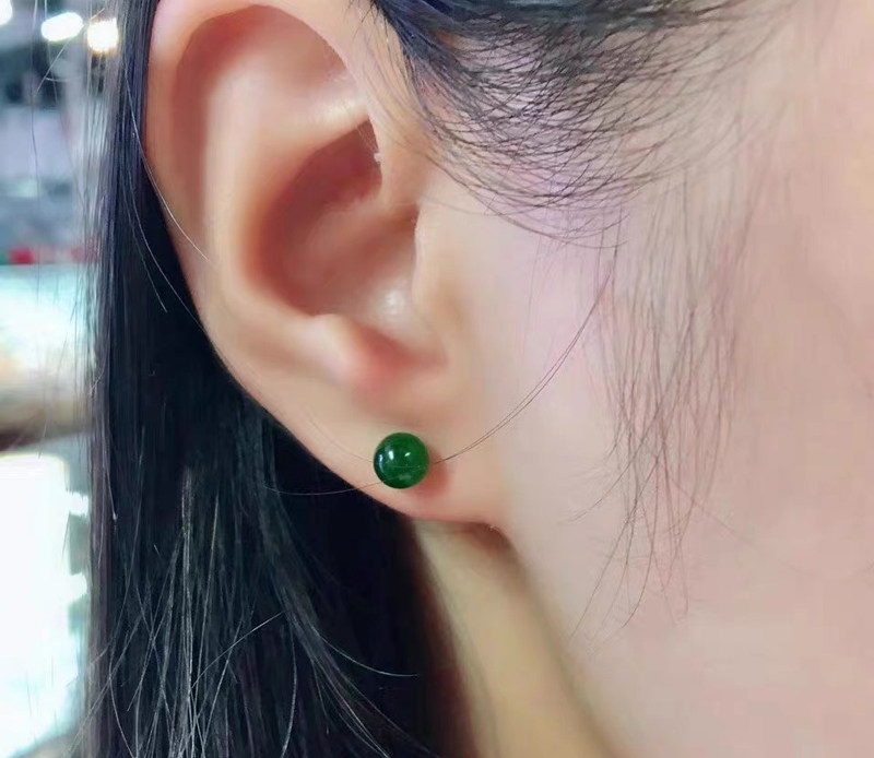 Natural and Tian Yubei jade ear needle 18K gold inlay female style 8MM round pearl half-hole, gift positive color oil moisturizing ear decoration