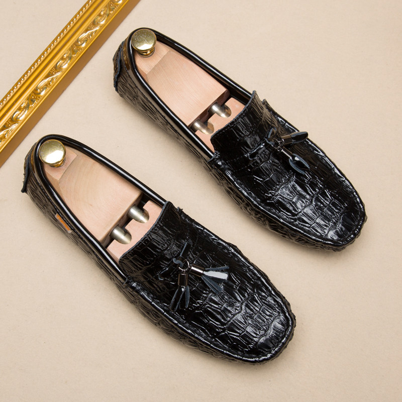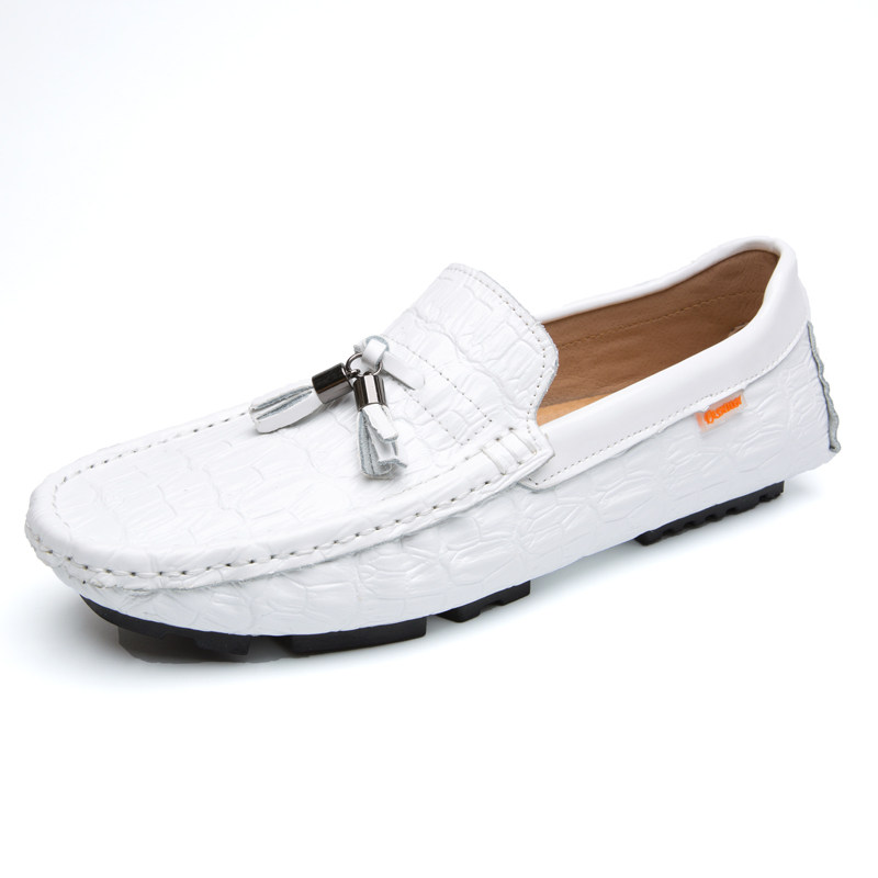 Doudou shoes men's leather British slip-on shoes youth tassel casual leather shoes trendy men's Korean version of the crocodile pattern white
