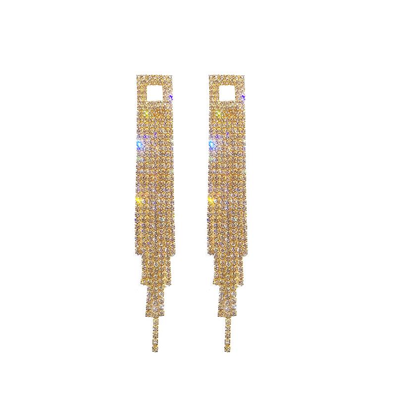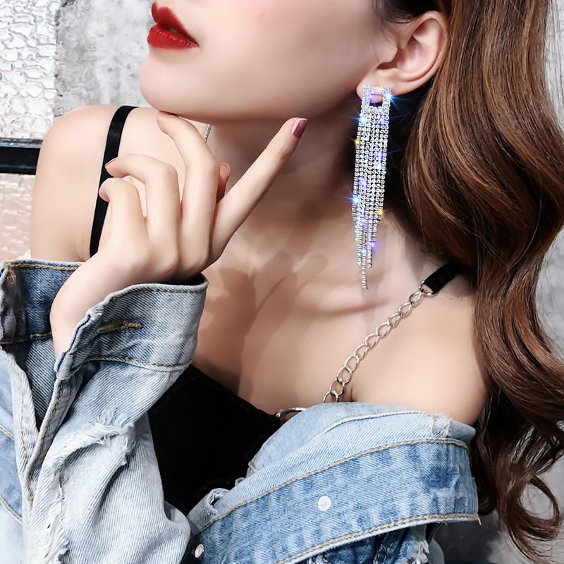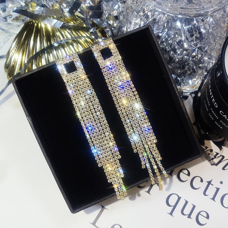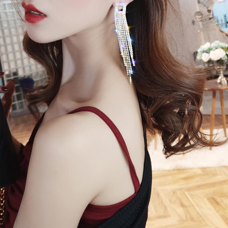 New square full of drilling long stream of Su earrings feminine Korean personality network red ear nails exaggerated ear gloss