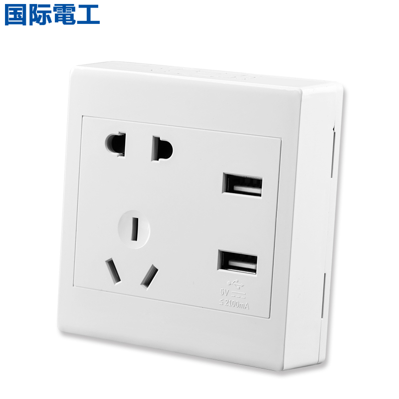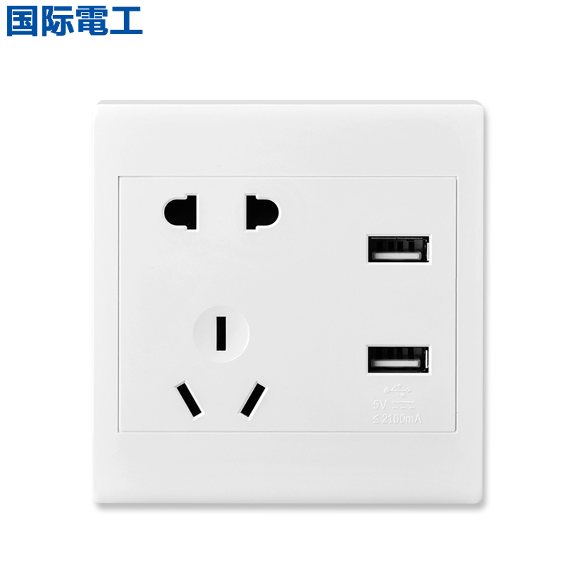 International electrician 86 switch socket wire panel Two or three plug five hole with double USB charging power outlet