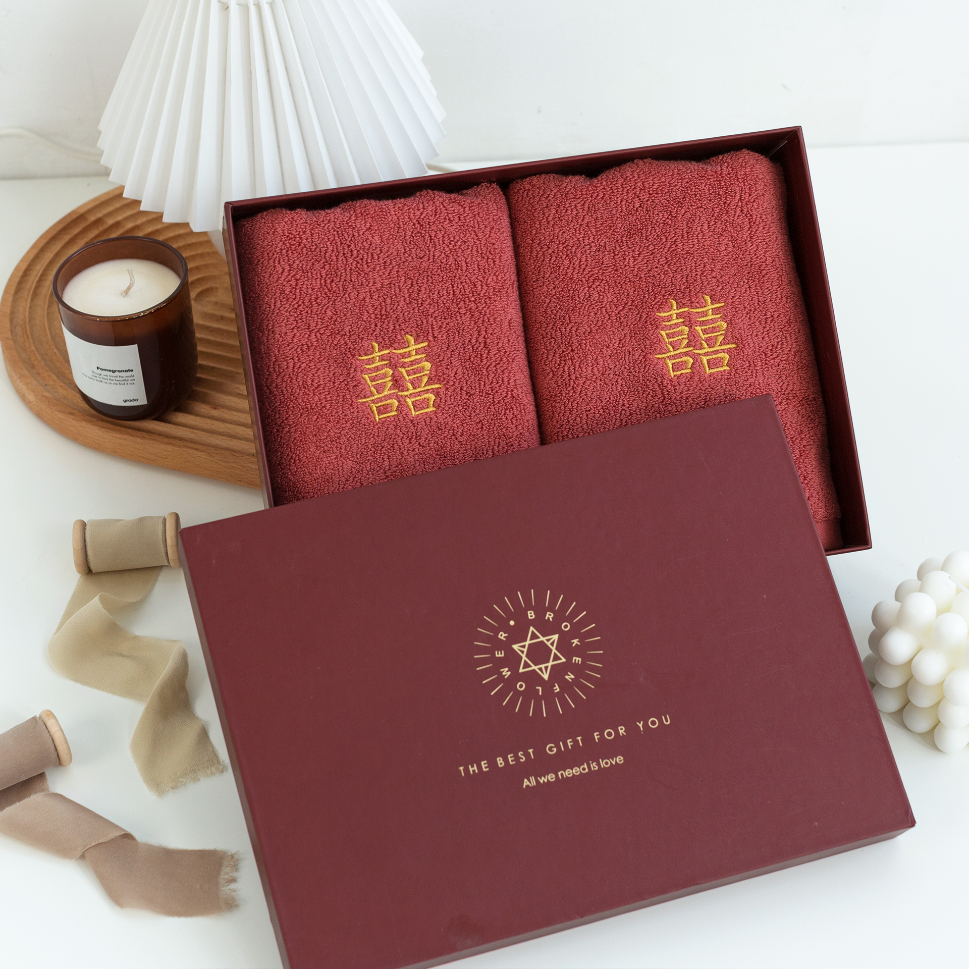 (Excluding Gift Boxes) Pink Grey Xi-shaped Wordtowel Set of Chinese characters-pink Pink Words-Grey Xi's character Grey Color Xi's Wordpowder Towel Red Gift Box Dress New WORD-RED NEW PINT Character Red Towel Red RED GIFT BOX