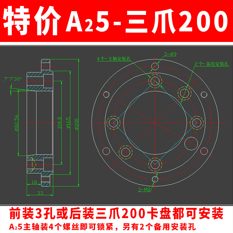CARD flanged steel type A type C spindle connecting disk three claws four claws fourth axis lathe flange plate
