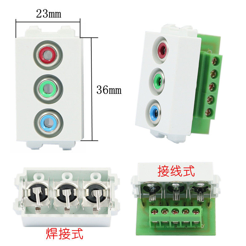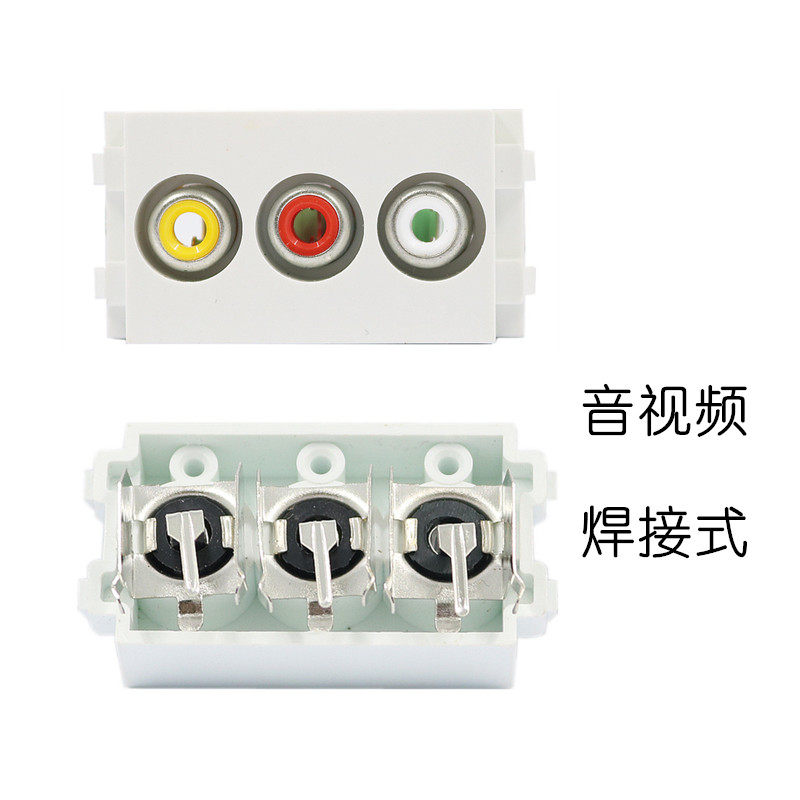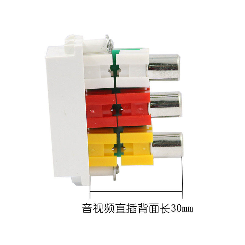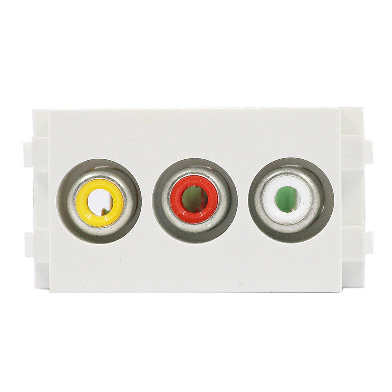 Triple hole audio-video module socket panel RCA red white yellow 3 lotus straight free screw ground insert accessory
