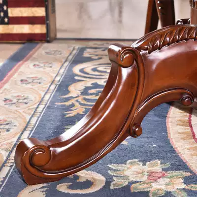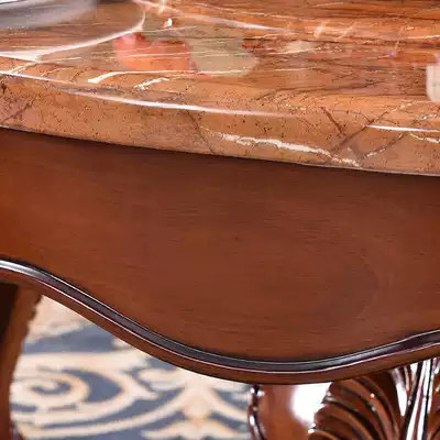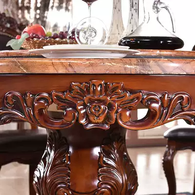 European-style marble dining table solid wood round table with turntable carved 6 people dining table small household dining table and chair combination