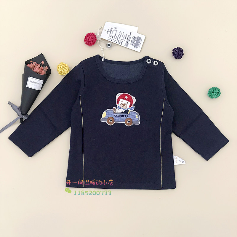 Cardi bear children's clothing spring and autumn boys' round neck shoulder open long sleeve T-shirt top boy baby clothes