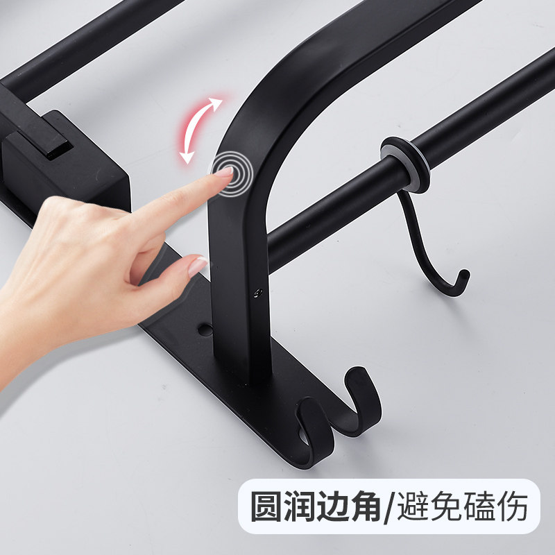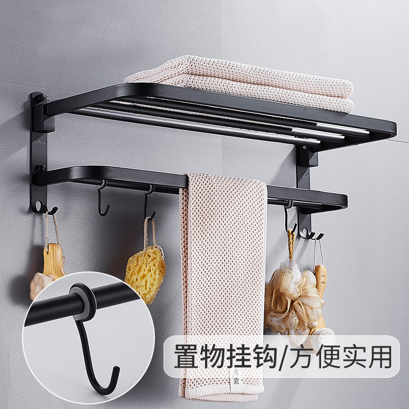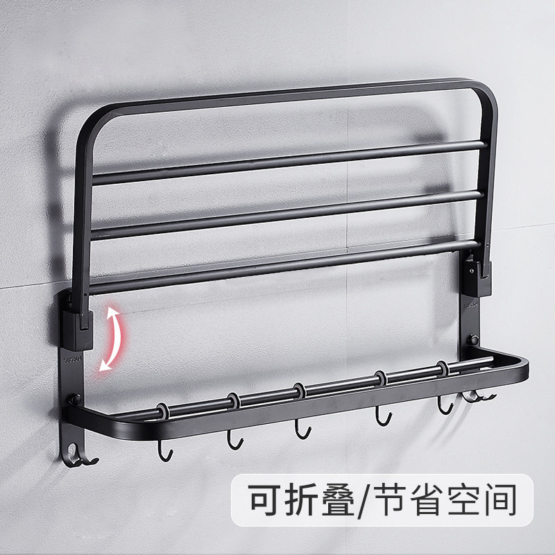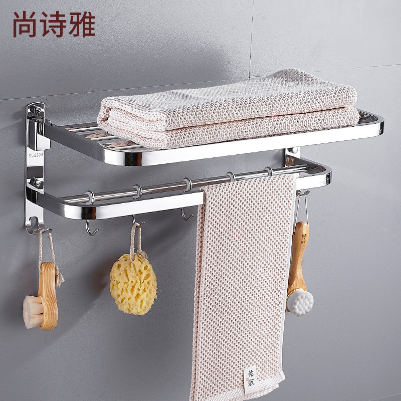Non-perforated towel rack Powder room stainless steel 304 bath towel rack toilet bathroom shelf Wall folding rod