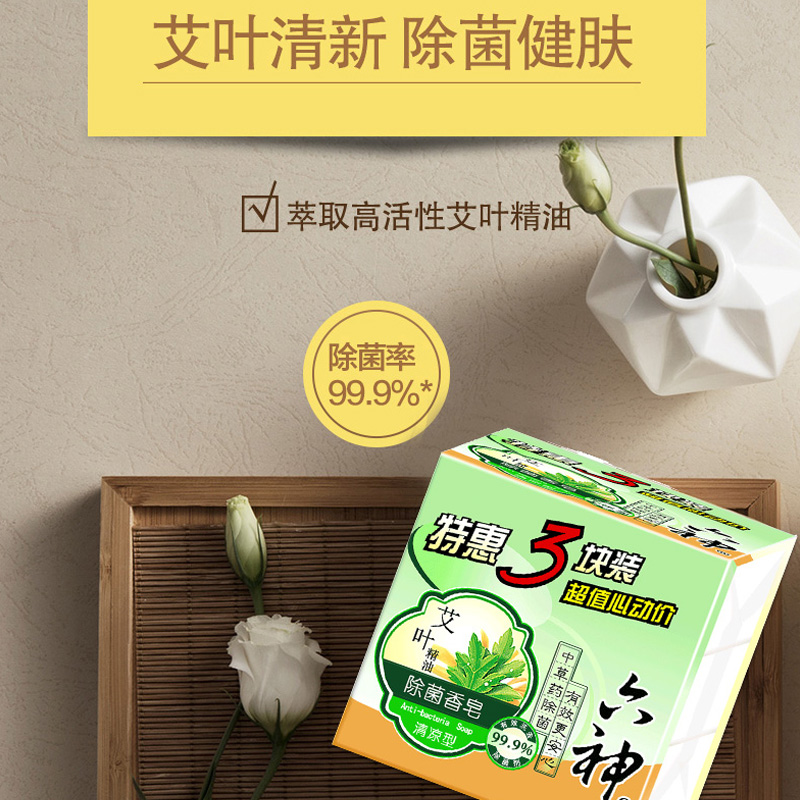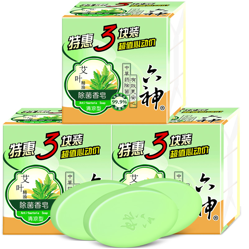 Three boxes of Liushen mugwort essential oil sterilization soap cool type 125Gx9 pieces bath, bath, face wash, facial cleanser soap