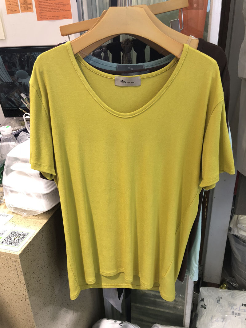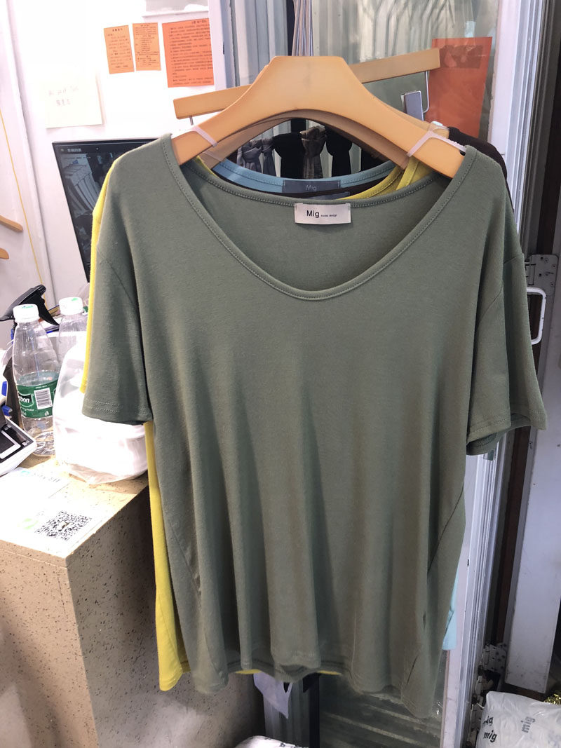 MIG Summer New Korean Version Crew Neck Solid Color Simple Versatile Basic Short Sleeve T-Shirt Women's Leggings 1039
