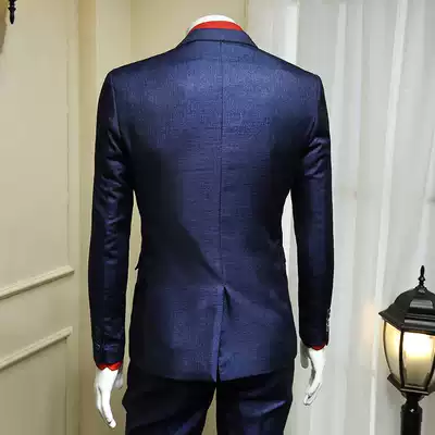 136524 spring and summer new dark blue business dress European and American gentleman British style suit men's suit trend two pieces