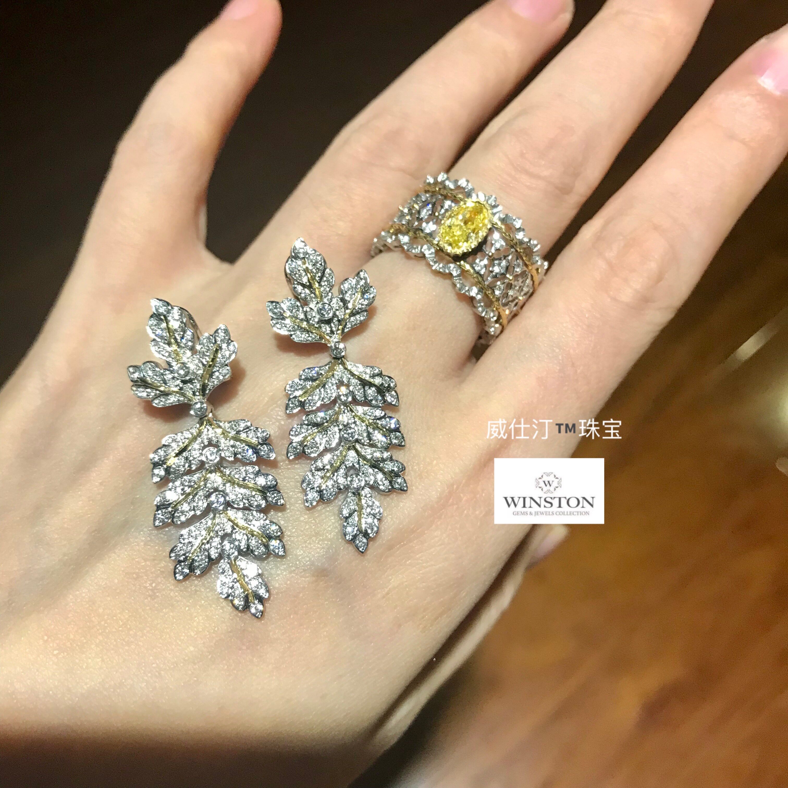 (Westin Jewelry) Snake Bone Maple Leaf Purely Handmade Luxury Elegant Tassel Earrings with Diamonds 18K White Gold