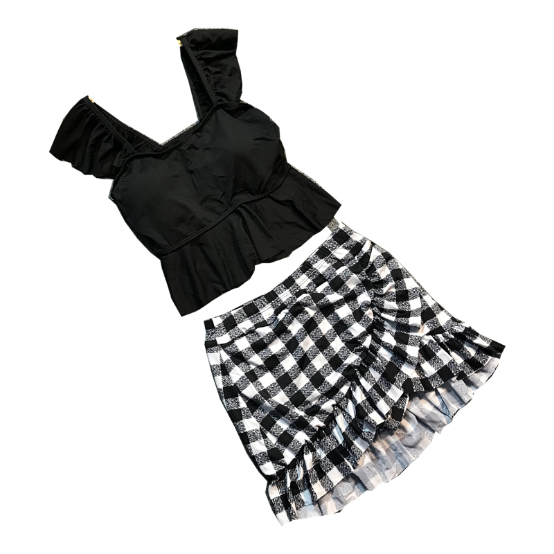 New hot spring swimsuit women's two-piece skirt flat angle small chest gathered conservative thin fresh student swimsuit