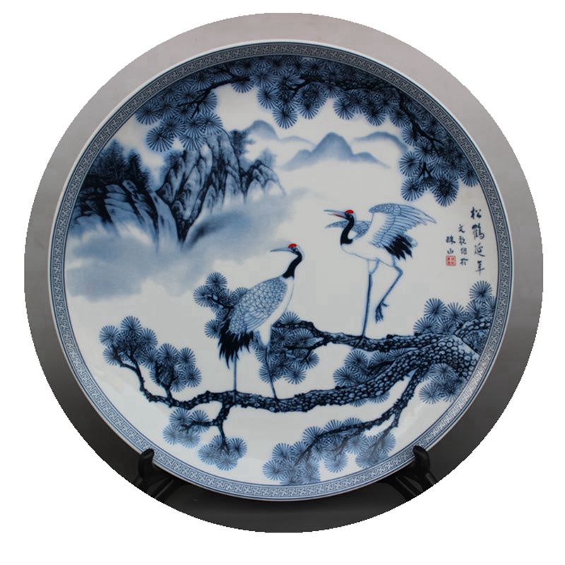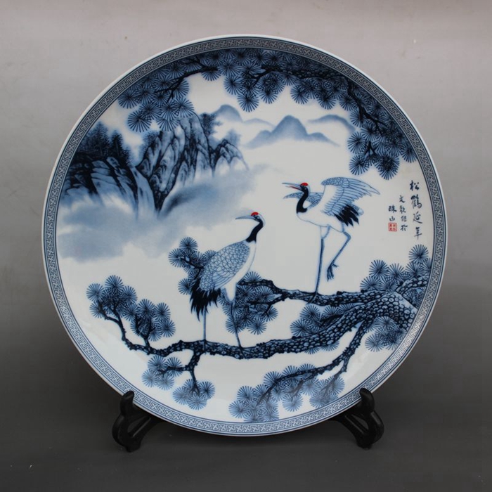 Ancient play old porcelain plate Jingdezhen imitation ancient Ming and Qing Porcelain Green Flowers Pine Crane Extended Year Table Decoration Sitting Tray Hem