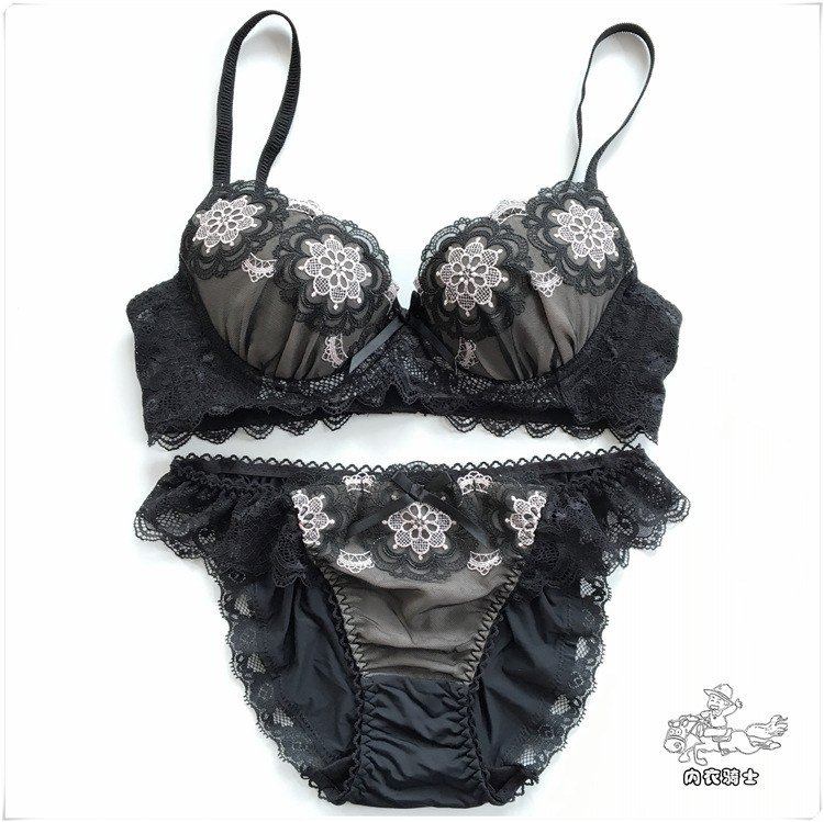 Izuhara D Heavy Industries exquisite embroidery geometric flower lace sweet gathered steel ring underwear set 65BC7075EF