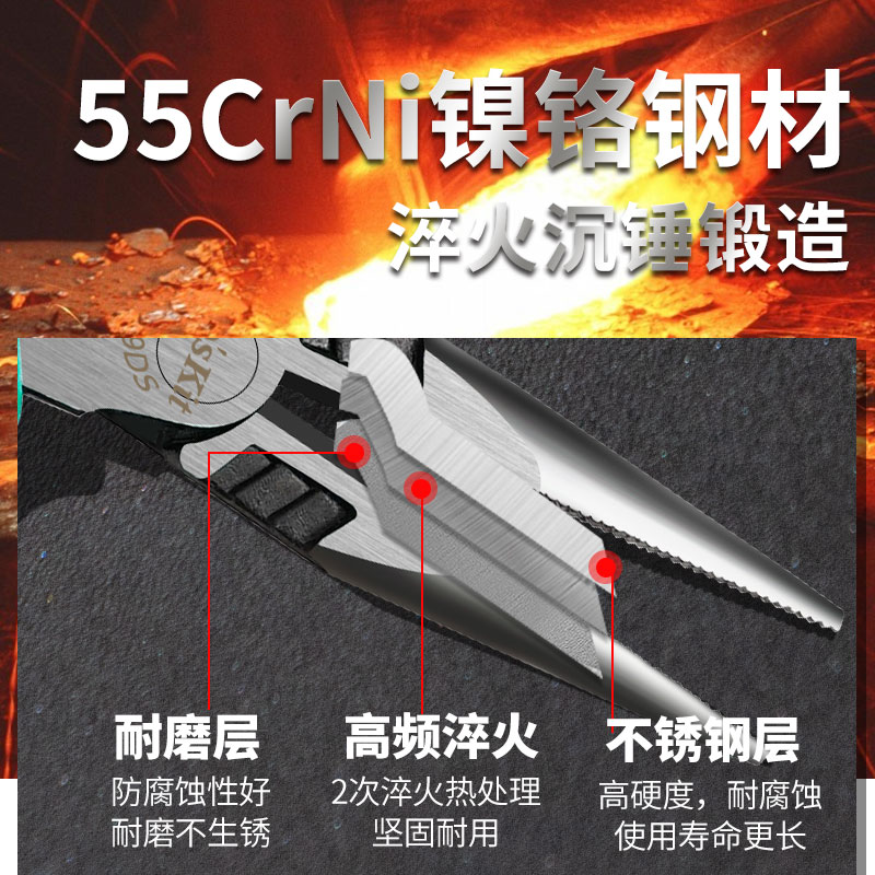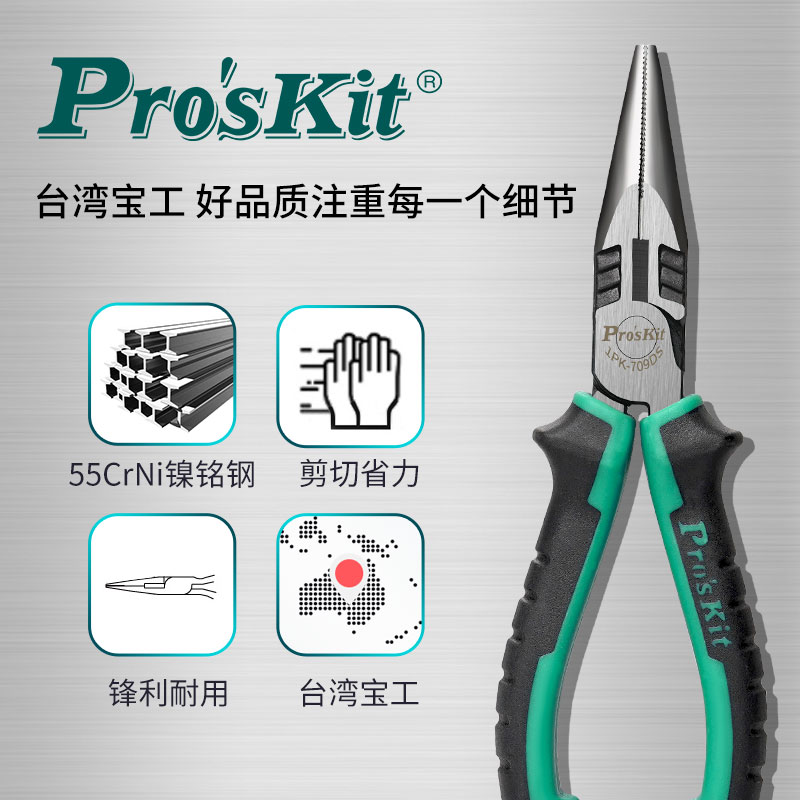 Taiwan Baogong tippack pliers 1PK-709DS two-color titanium alloy tipped pliers electrician long mouth pliers round mouth pliers dial line