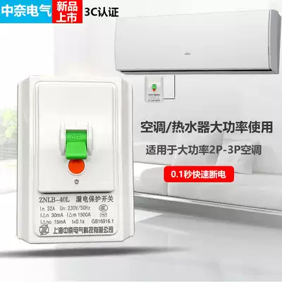 Air conditioning leakage protection switch type 86 special leakage protection device 32a cabinet machine special air opening 40A leakage protection Zhongnai