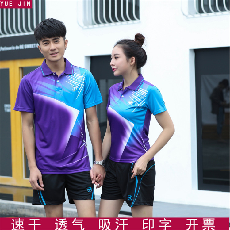 Men's and women's short-sleeved lapel badminton suit sweat-absorbing sportswear suit black red purple group purchase custom printed jersey