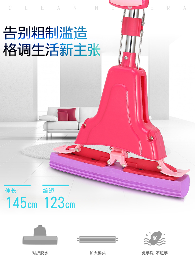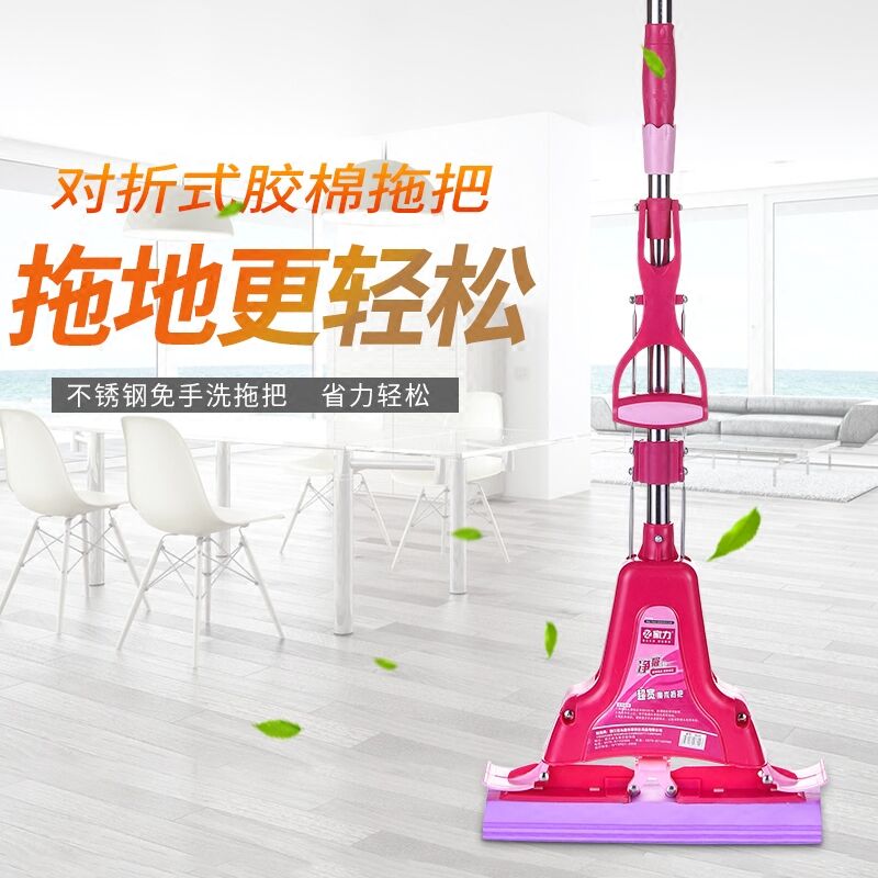 Jiali sponge absorbent mop head hands-free wash-free double-folded rubber cotton squeezing water household stainless steel rod mop mop