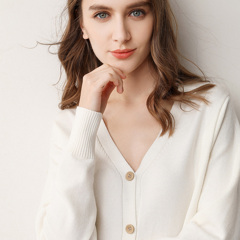 Spring mid-length loose wool sweater slimming coat cardigan V-neck sweater sunscreen shirt long-sleeved thin section large size