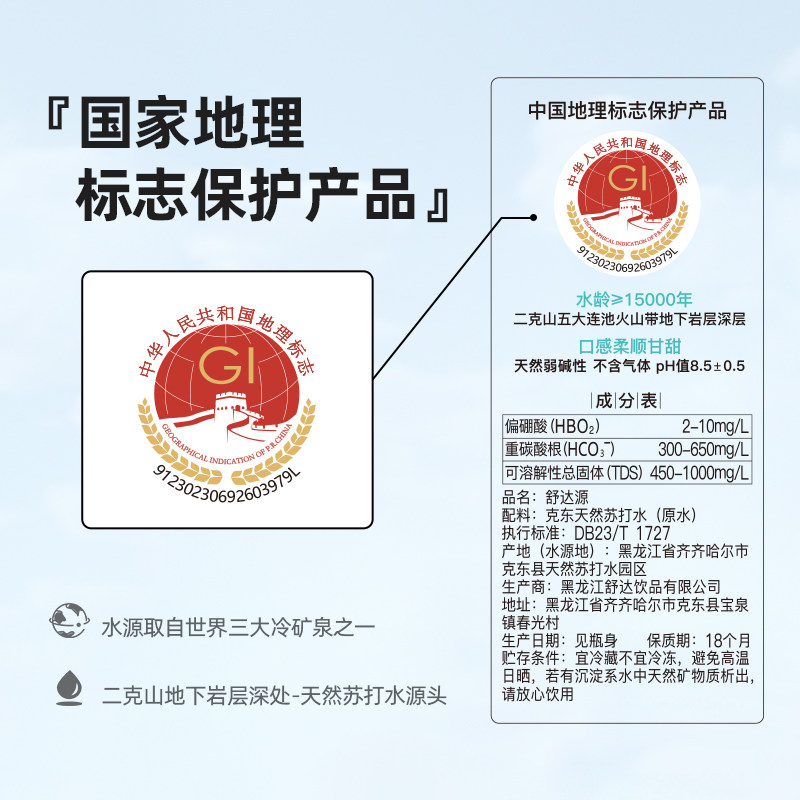 Shudayuan Wudalianchi Kedong Natural Soda Water Alkaline Water Airless Sugar-Free Family Pack 1 25L*9 Bottles