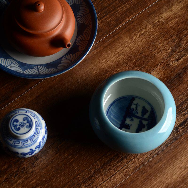 Jingdezhen imitated ancient green flower porcelain ceramic small number washed tea slag hopper Kung fu tea with tea track accessories Water-pelvis