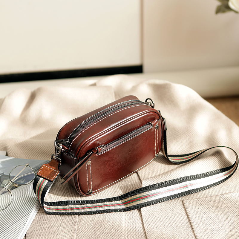 2022 spring and summer hot selling leather oil wax cowhide single shoulder messenger retro fashion casual trend small square bag women's bag