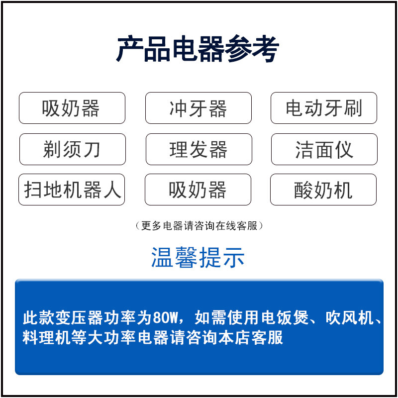 80W domestic use 220V to 110v80W foreign use 110v 220V