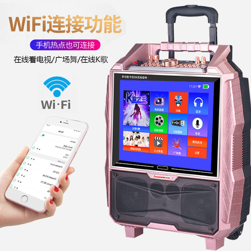 Changhong Square Dance Sound Band Display Outdoor Hand pull rod portable Bluetooth Video Player Karaoke Home KTV One song singer K song dance network Wifi speaker
