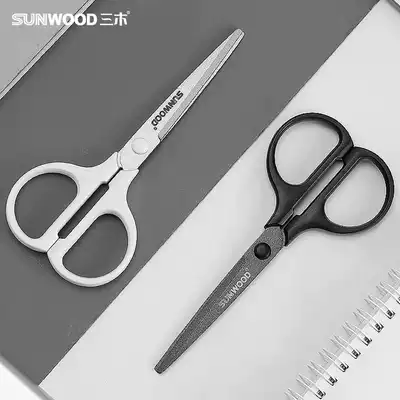 Three wood coated fluorine non-adhesive hand scissors stationery and paper tape special anti-stick scissors household paper-cut office small Teflon coating alloy stainless steel scissors art