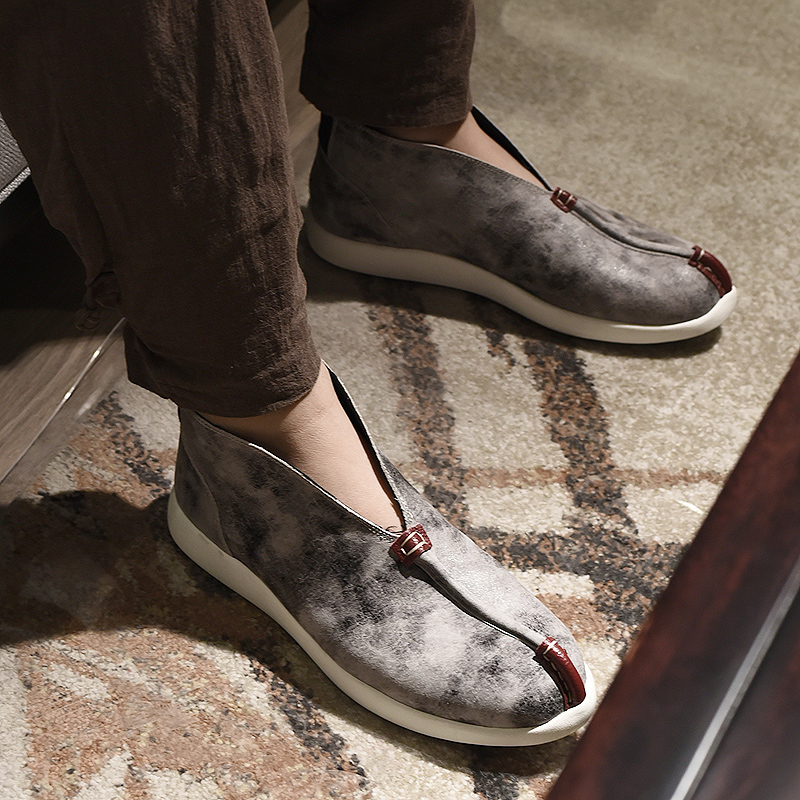 Chinese style shoes men's lazy shoes a pedal Chinese Chinese boots Joker official boots flat heel shoes retro shoes trendy men