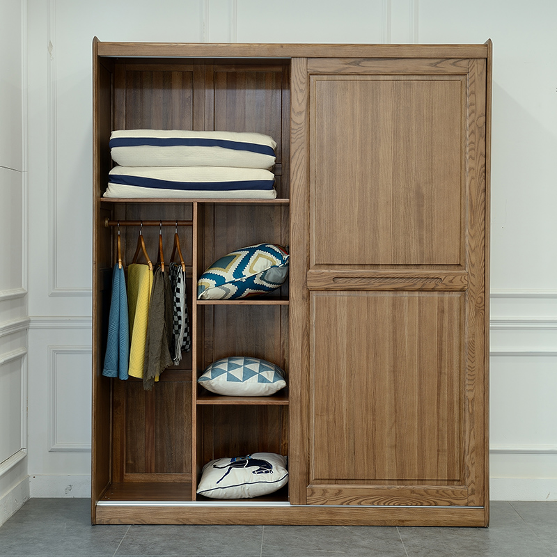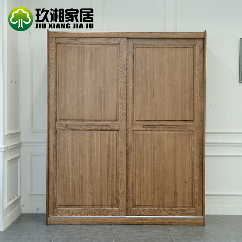 Jiuxiang Nordic Ash Wood Wardrobe Wardrobe Sliding Door Sliding Door 2 Doors Cabinet Modern Simple Bedroom Furniture