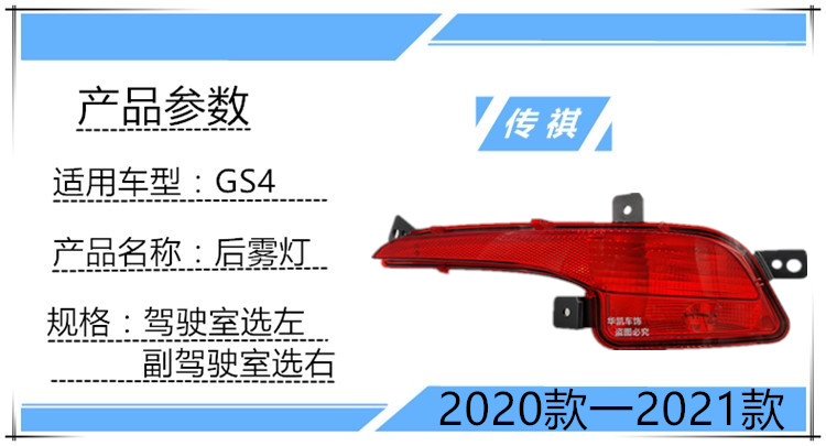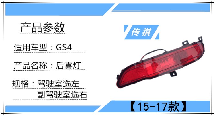 15-17 normal rear fog lamps (left) 15-17 normal rear fog lamps (right) GS4 original quality rear fog lamps left (15-17 models GS4 original quality rear fog lamps right (15-17 models 18-19 models Original quality rear fog lamps (left) 18-19 original quality rear fog lamps (right) 18-19 rear bar lamp decorative panel left) 18-19 models rear bar lamp decorative panel right) 19-21 GS5 rear fog lamps original quality left 19-21 GS5 rear fog lamp original quality right 20-21 GS4 rear fog lamp (left) 20-21 GS4 rear fog lamp (right) 15-17 exhaust pipe decorative frame left 15-17 exhaust pipe decorative frame right