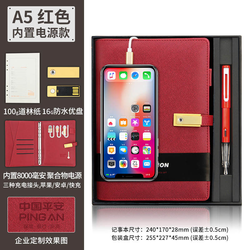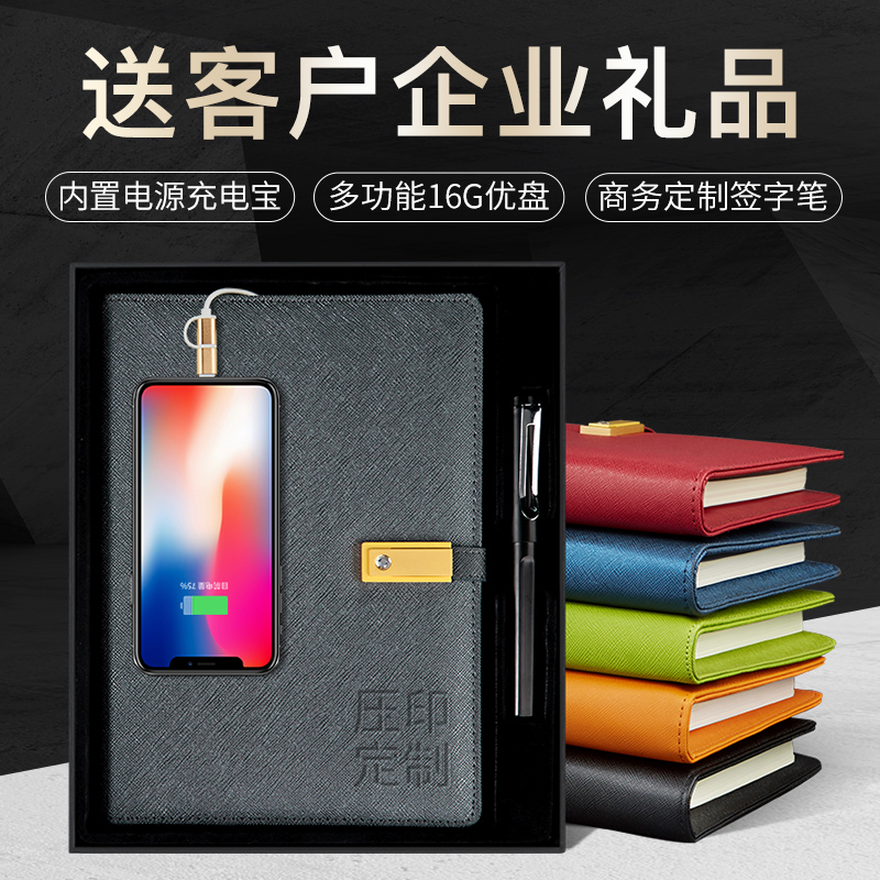 Company customized multi-function gift business meeting notepad A5 customized cover photo annual meeting gift lettering notebook with charging treasure can print logo soft leather high-end office stationery