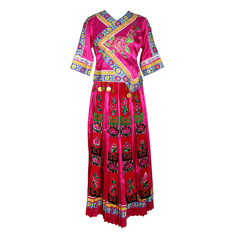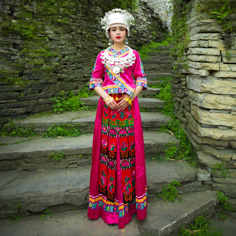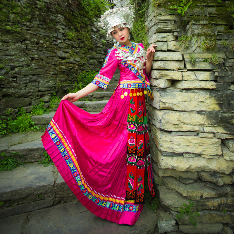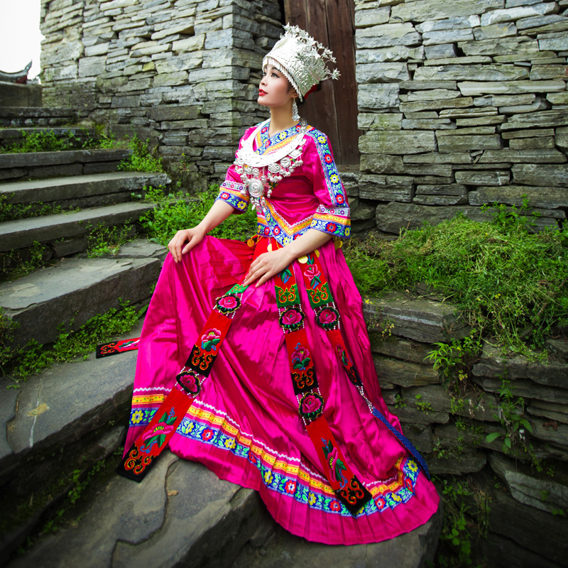 Ma Ru's New Dong, Tujia and Miao Ethnic Costume Long Skirt Slim Fit Dance Performance Gift Instrument Conference Clothing