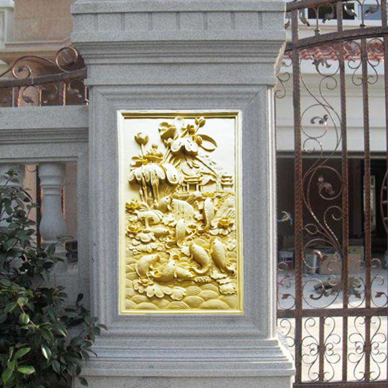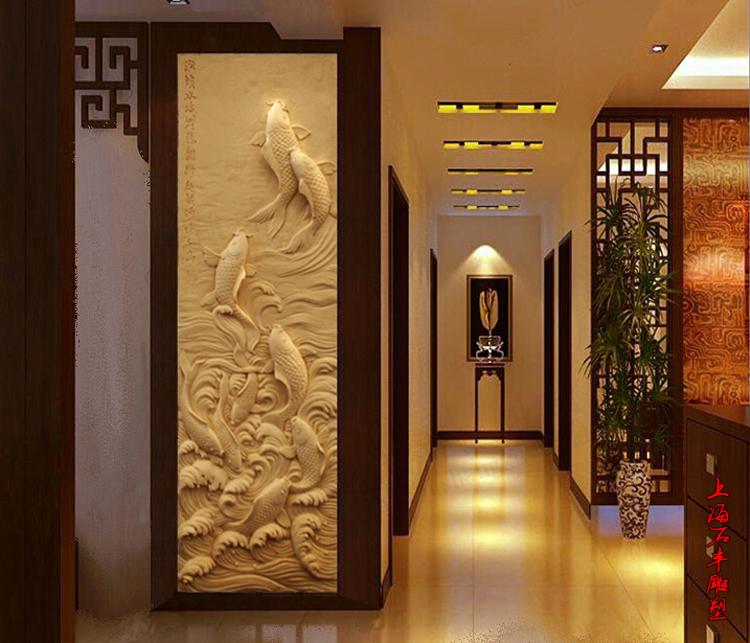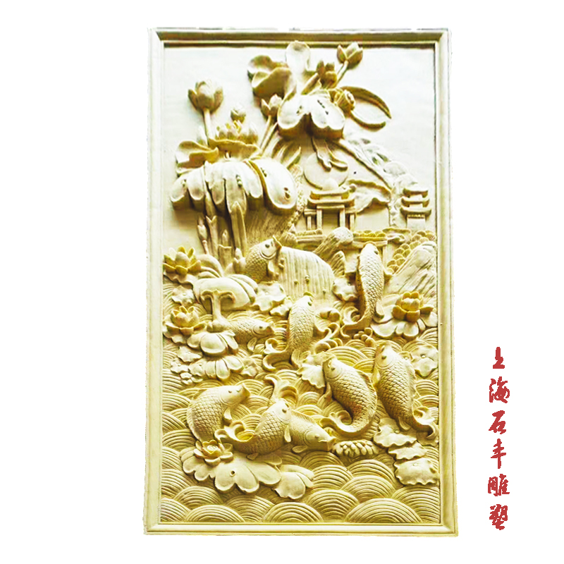 Sandstone reliefs TV background wall Xuanguan mural sculpture indoor outer solid sandstone engraved carp leaping gantry painting