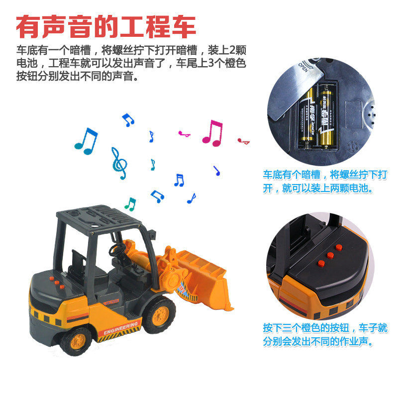 Lili Children's Engineering Vehicle Inertia Toy Car Model Large Music Forklift Gift Box Boys 2-6 Years Old