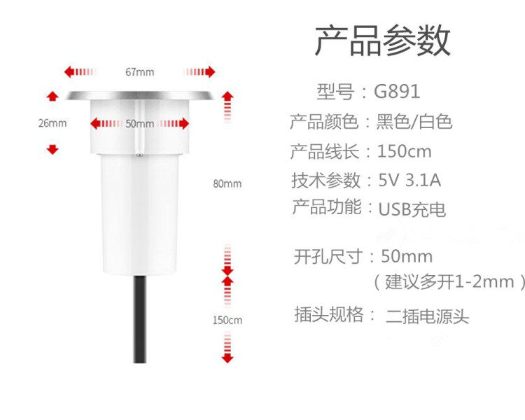 Sofa-embedded USB charger Multi-mouth tea set sofa socket office table plug-in-head cabinet mobile phone universal