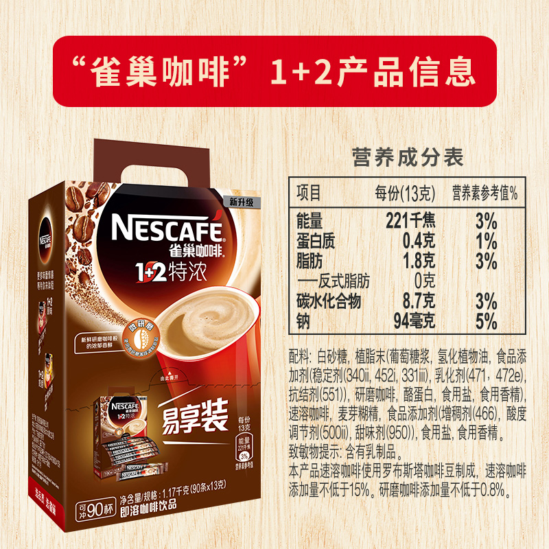 Nestle Coffee 1 2 micro grinding of intense and fragrant 90 strips * 13g three-in-one instant coffee powder gift boxed 1170g