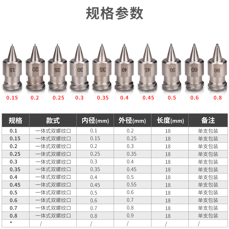 Japan imported one-piece double thread mouth high precision peel needle stainless steel cone needle dotting valve nozzle nozzle