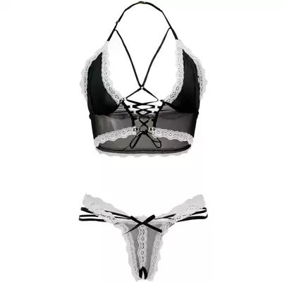 Playful maid 4-piece pajamas set Tube aunt 10: 30 Bus D-038 sexy mesh bra underwear female