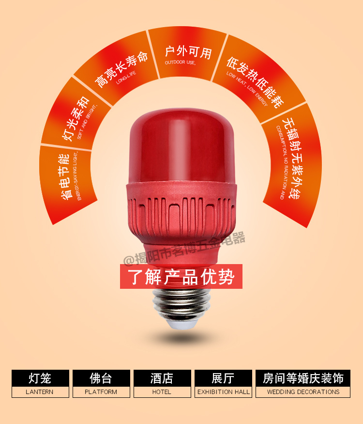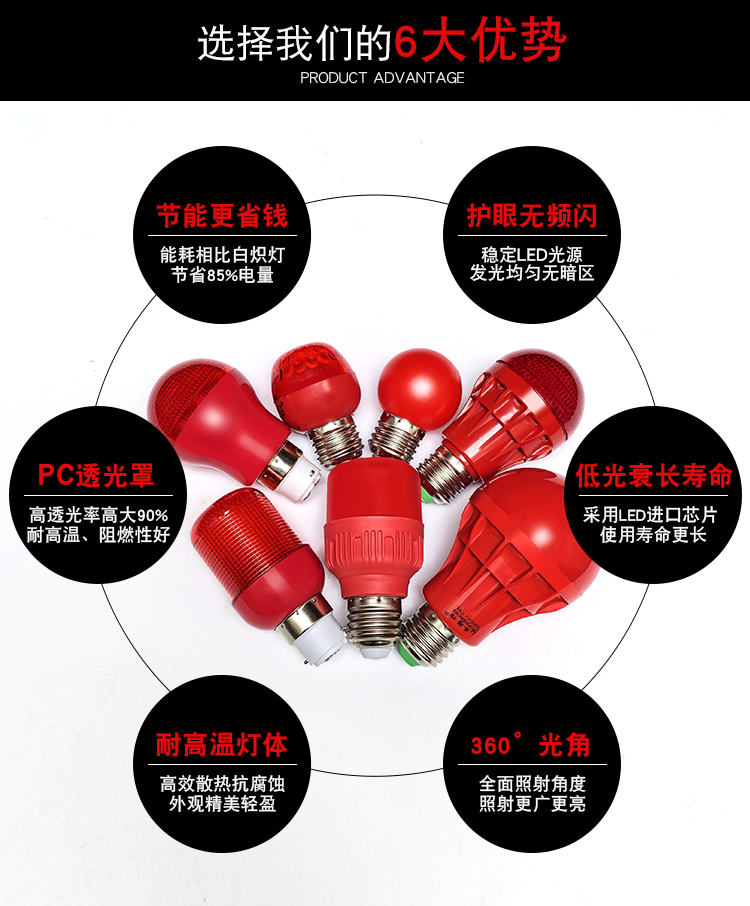 3W big red light LED energy-saving light bulb wedding lantern special altar Buddhist altar for lamp E27 screw B22 bayonet