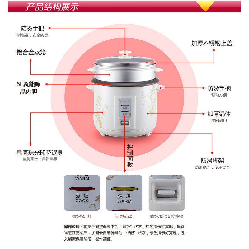 Rongshida 5l liter rice cooker electric cooker household 5l liter mechanical ordinary old-fashioned 3-4-5-6-7-8-9 people