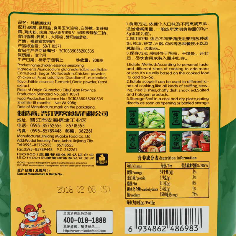 Shape Dollar Chefs Chicken Essence Bags Commercial Seasonings 908g * 10 Packs Whole Boxes Chicken Powder Seasoning Instead Of MSG Commercial-Taobao