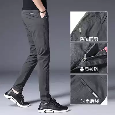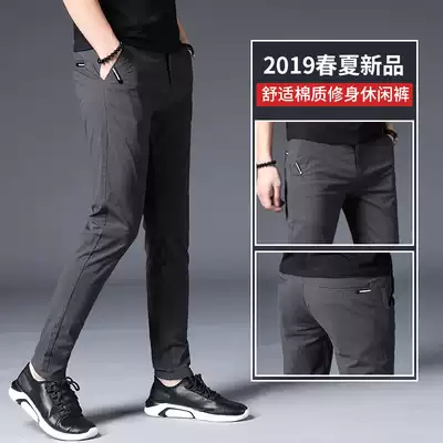 2021 summer new men's casual pants men's pants slim feet Korean version of the trend wild handsome thin straight tube