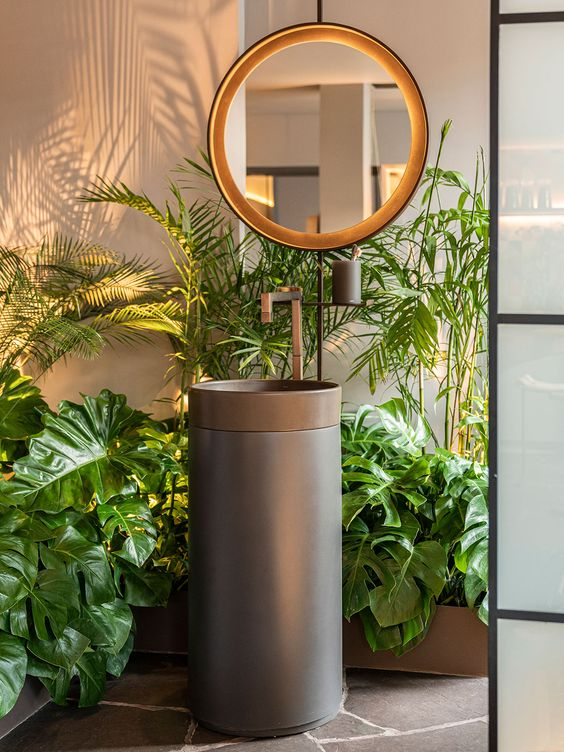 Wash basin Column one-piece floor-standing brass independent wash basin Powder room basin column industrial wind wash basin