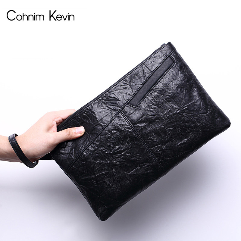 Cohnim Kevin Bull Leather Large Capacity Hand Grip Envelope Bag Casual Handbag Men Genuine Leather Fashion Men's Hand Holding Bag