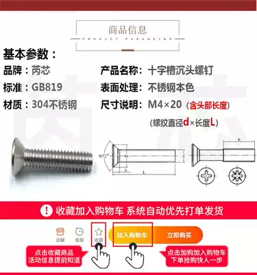 M3M4M5M6 KM electronic flat head small screw 304 stainless steel cross countersunk head screw National standard fastener