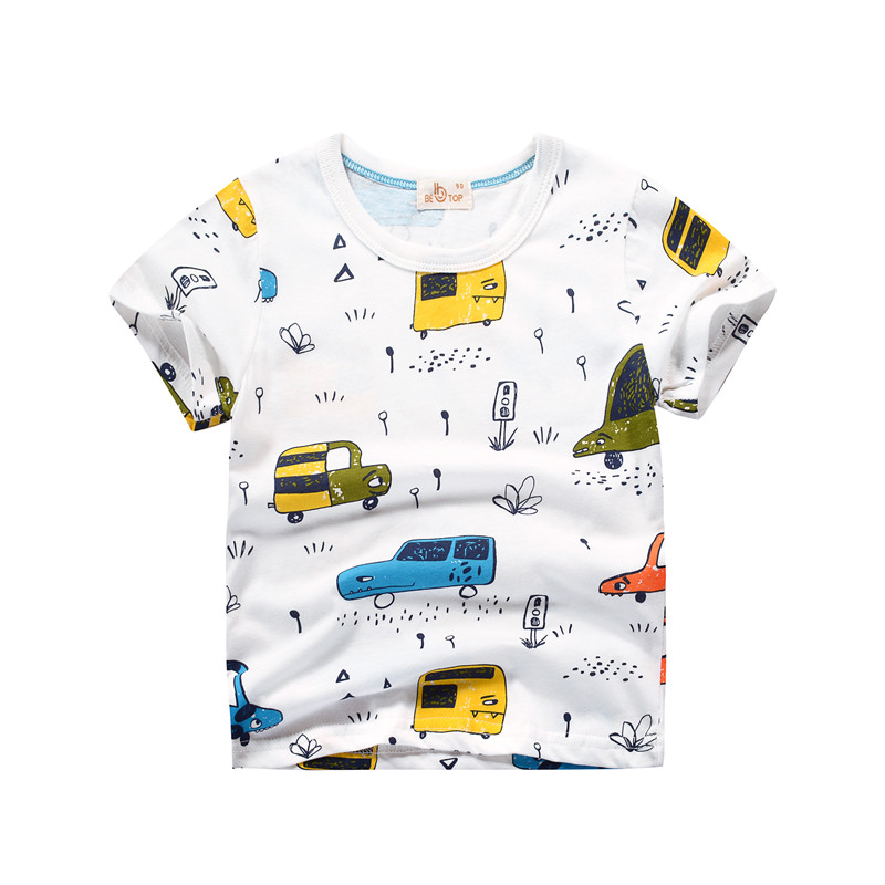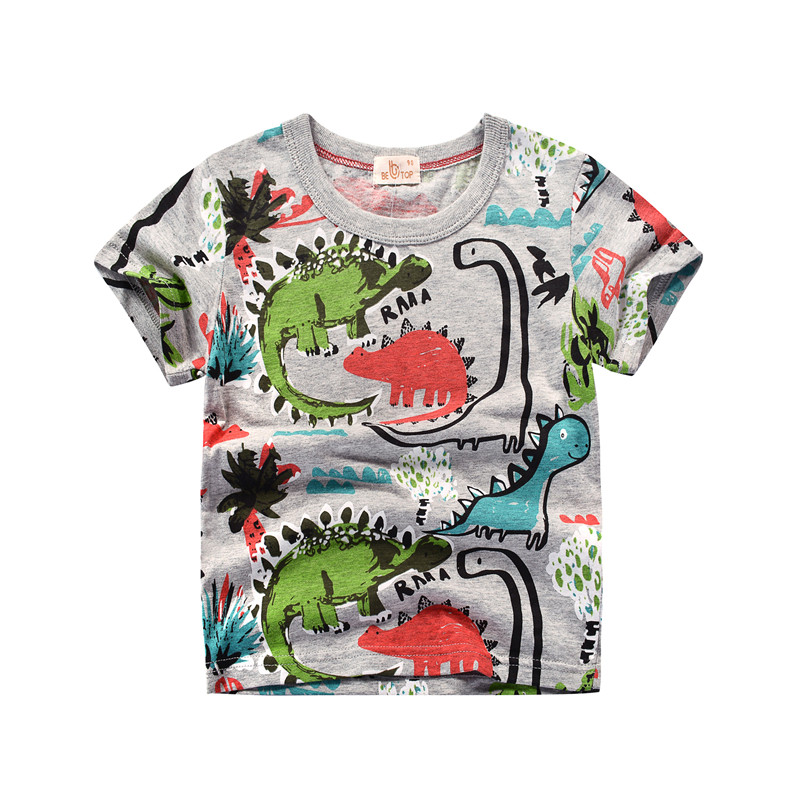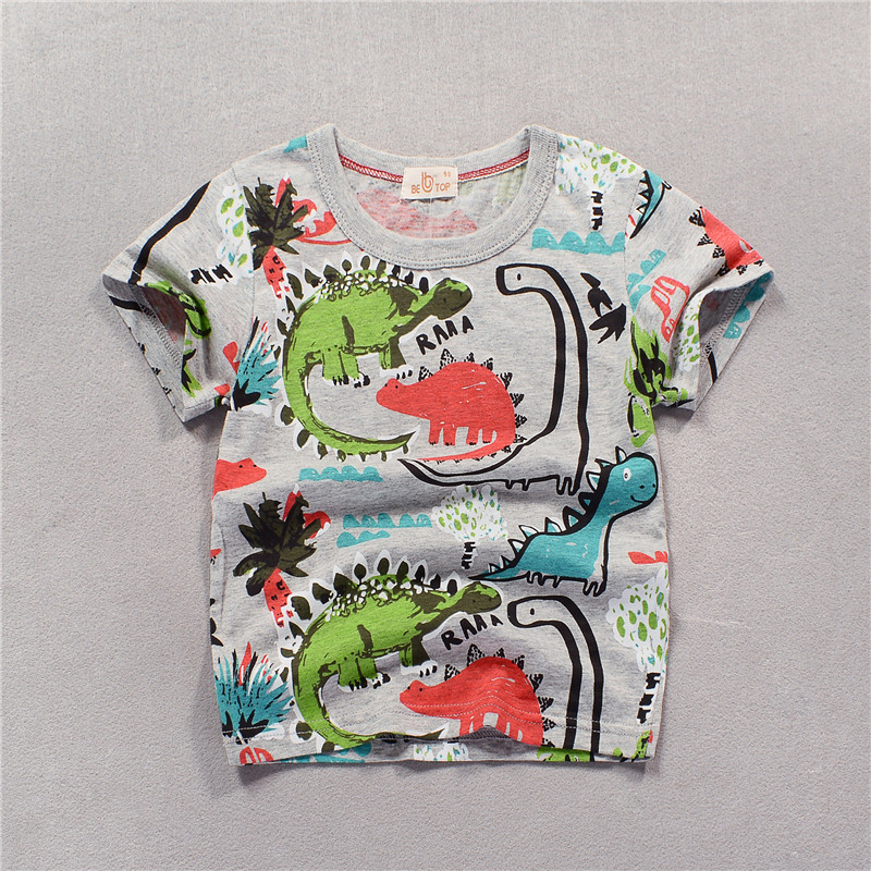 2022 children's clothing summer new Western style children's short-sleeved t-shirt boys children's clothing half-sleeved full-print bottoming shirt tide