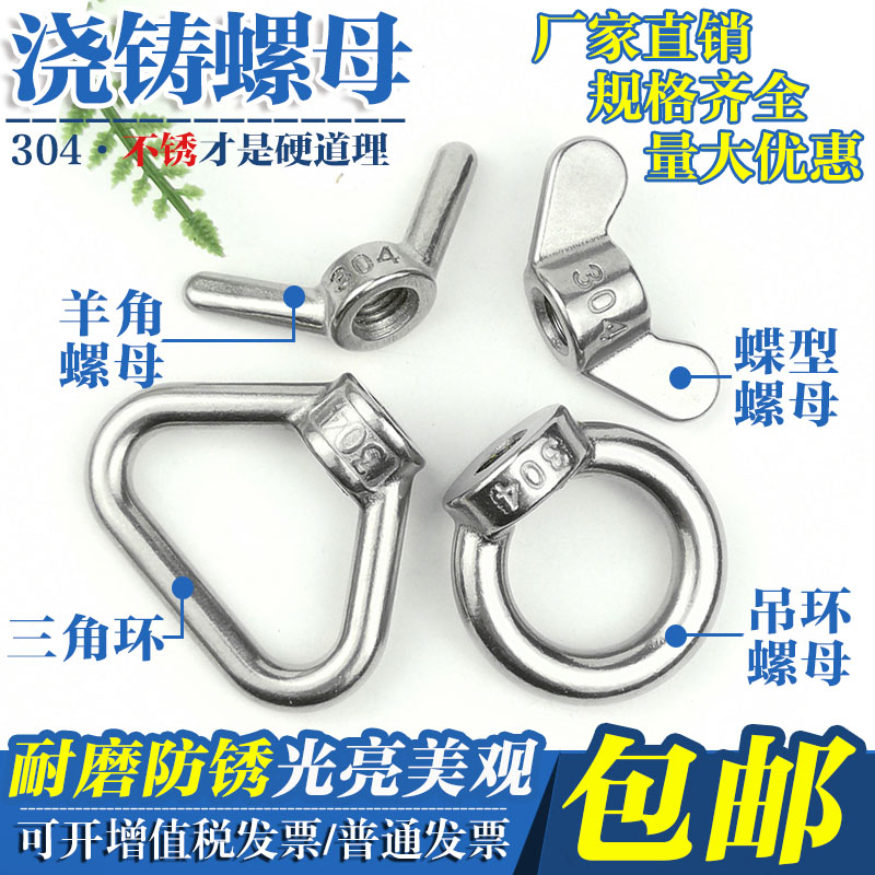 304 stainless steel butterfly nut triangle ring pendant ring butterfly horn casting nut yuanbao hand screw cap